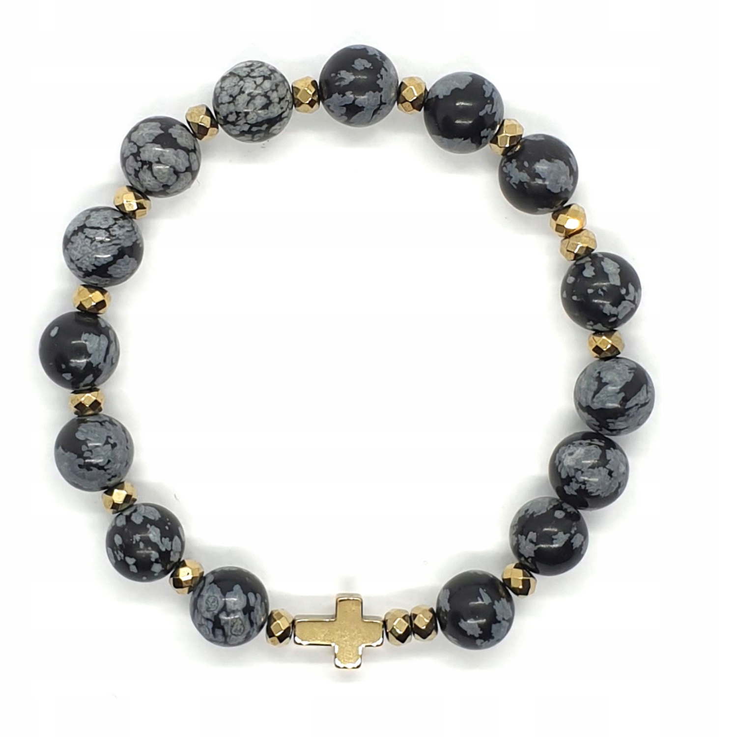 Золотой гематит:крест 10х8 мм и граненые проставки 4 мм
