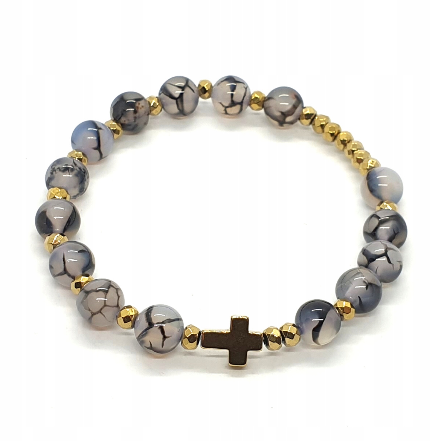 Золотой гематит:крест 10х8 мм и граненые проставки 4 мм