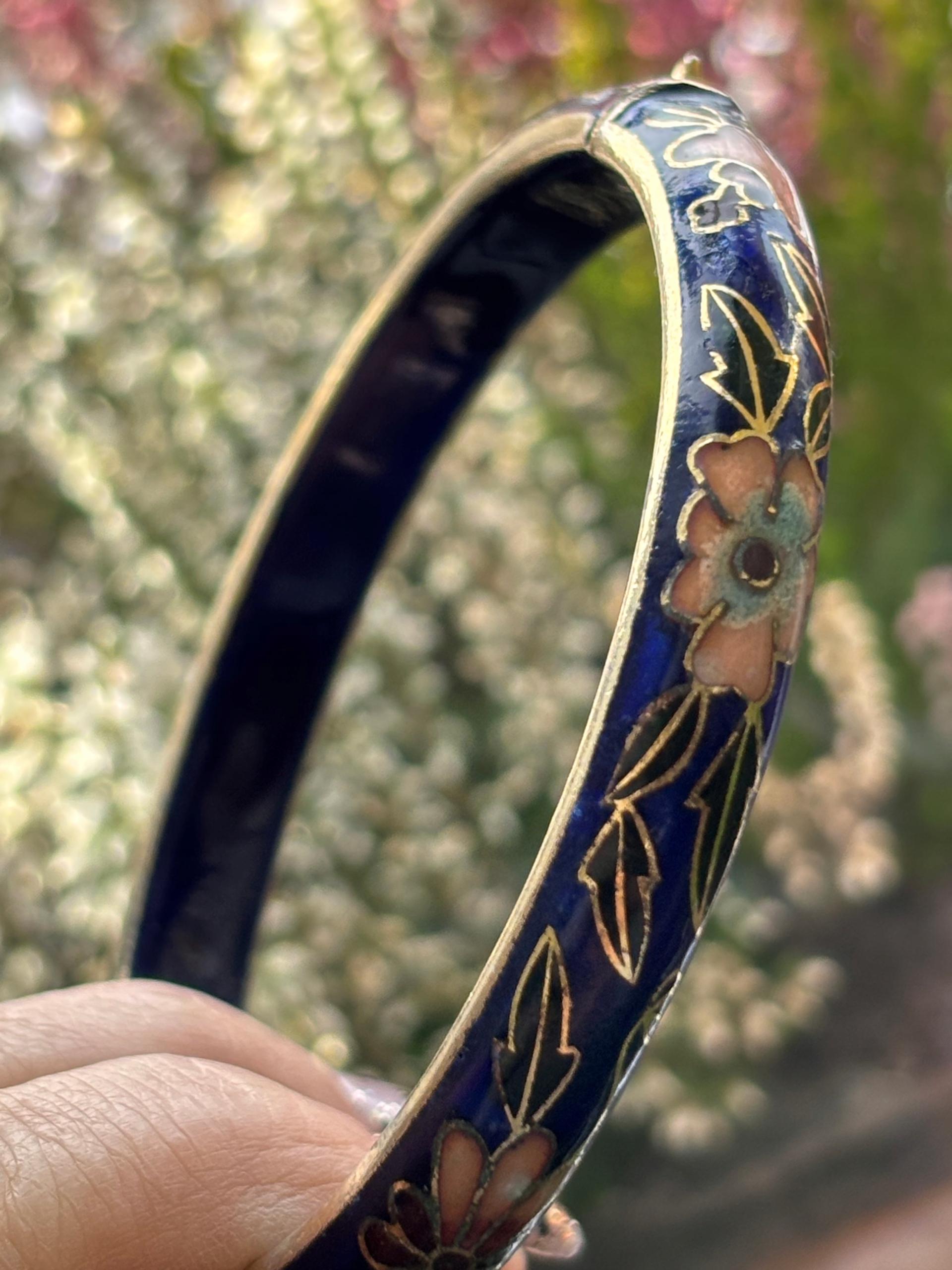 Браслет Cloisonne, старина, жесткий круг, отверстие, эмаль, цветы