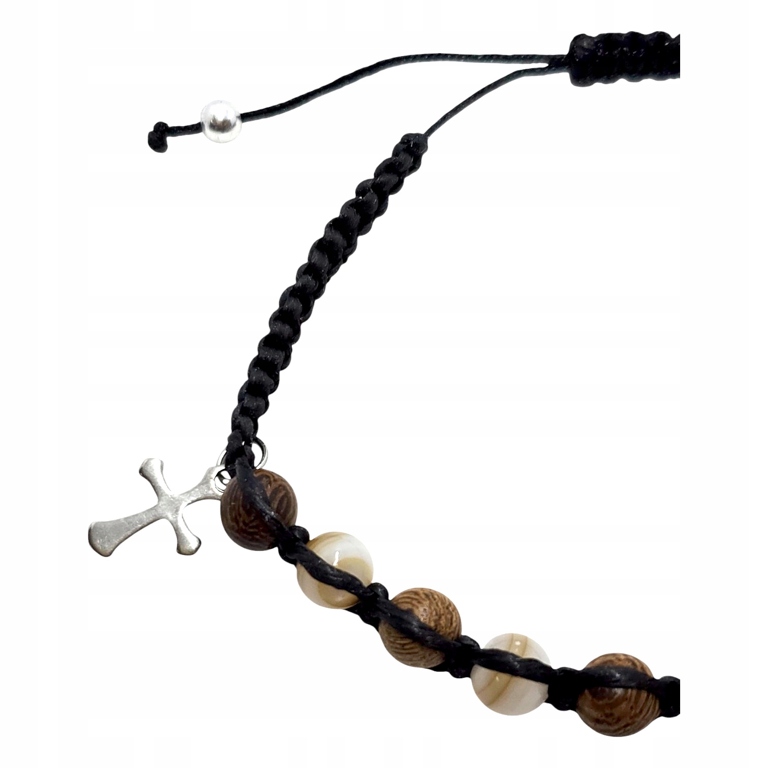 Элегантный и естественный браслет, изготовленный из 5 тщательно выбранных камней и деревянных шариков, прибитый к прочной, регулируемой струне. Деликатный крест добавляет браслет тонким, религиозным акцентом. Натуральные камни, с различными текстурами и цветами, придают браслету уникальный характер. Регулируемая строка позволяет вам идеально подходить к каждому размеру запястья, обеспечивая комфорт. Этот браслет является отличным дополнением к людям, которые ценят естественную красоту.