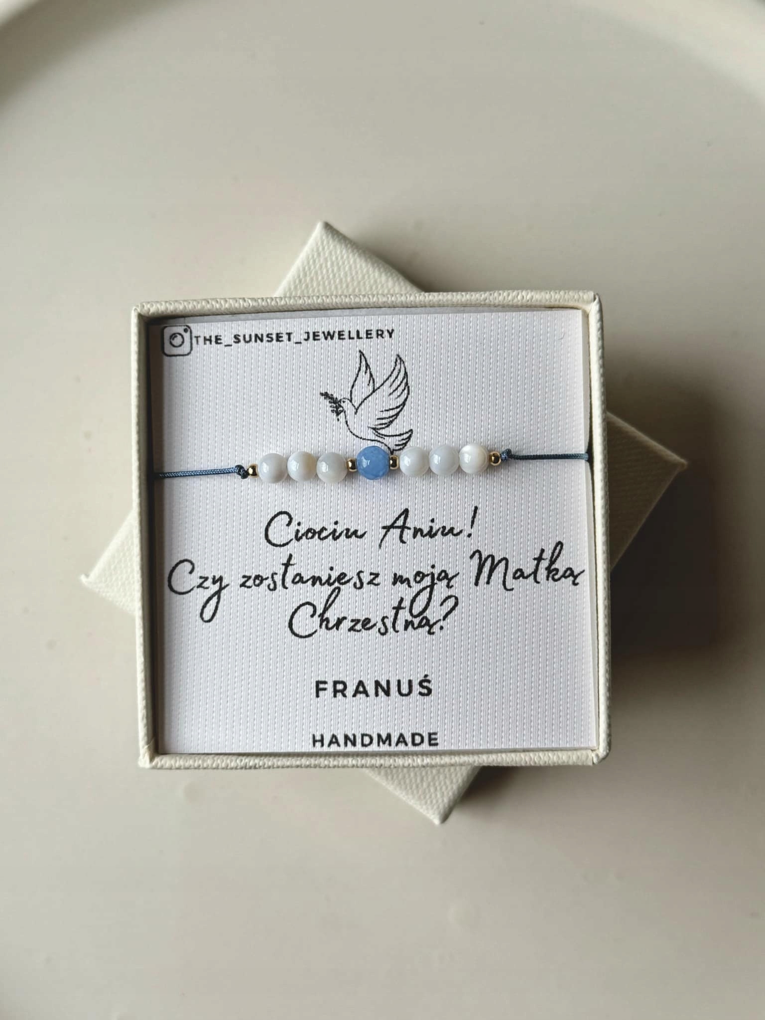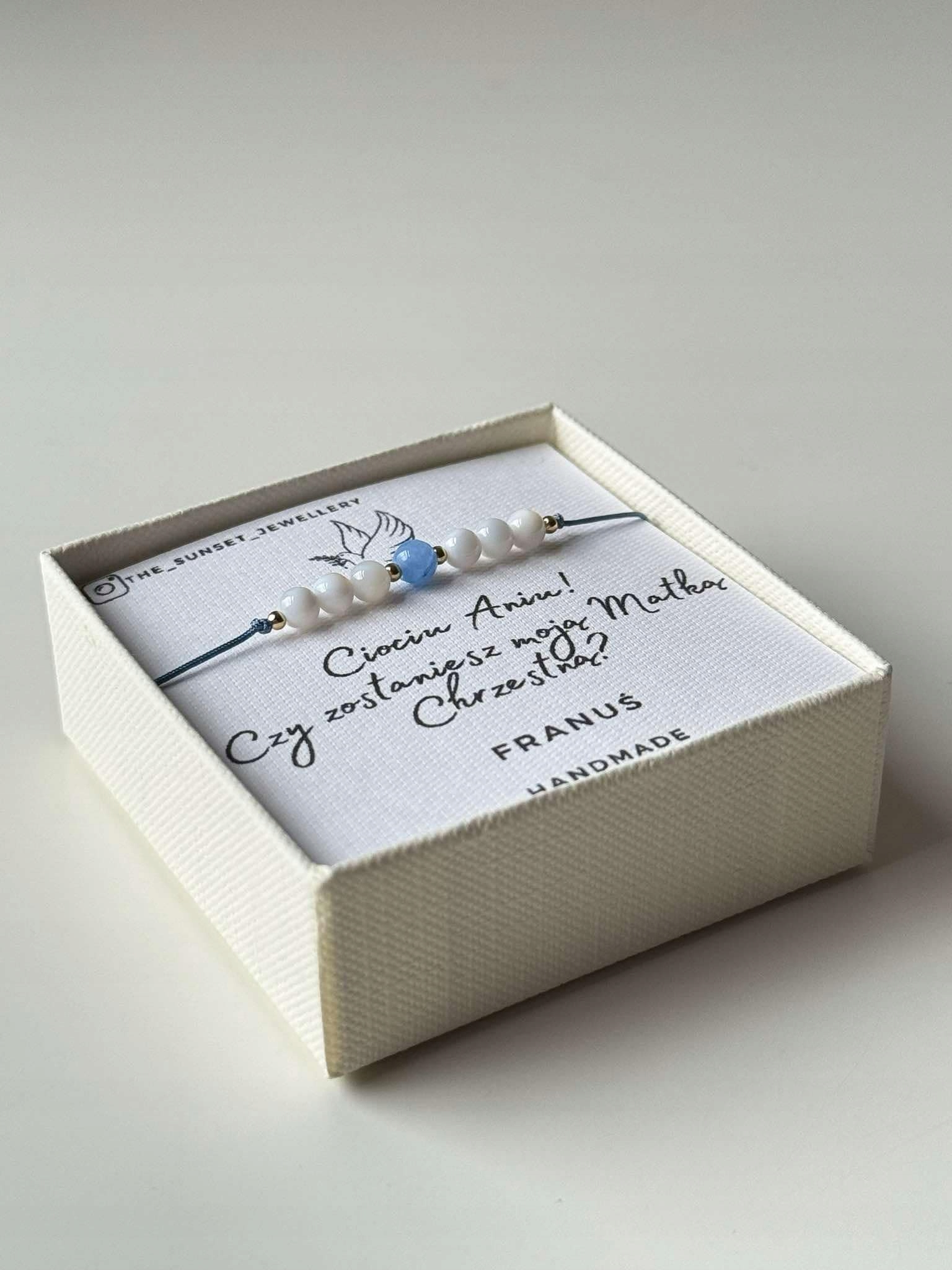 Браслет, изготовленный из естественных камней, который является идеальной идеей как просьбой быть крестной, является уникальным и символическим даром, который может напоминать духовные ценности и близость в отношениях между крестной матерью и ребенком. энергия