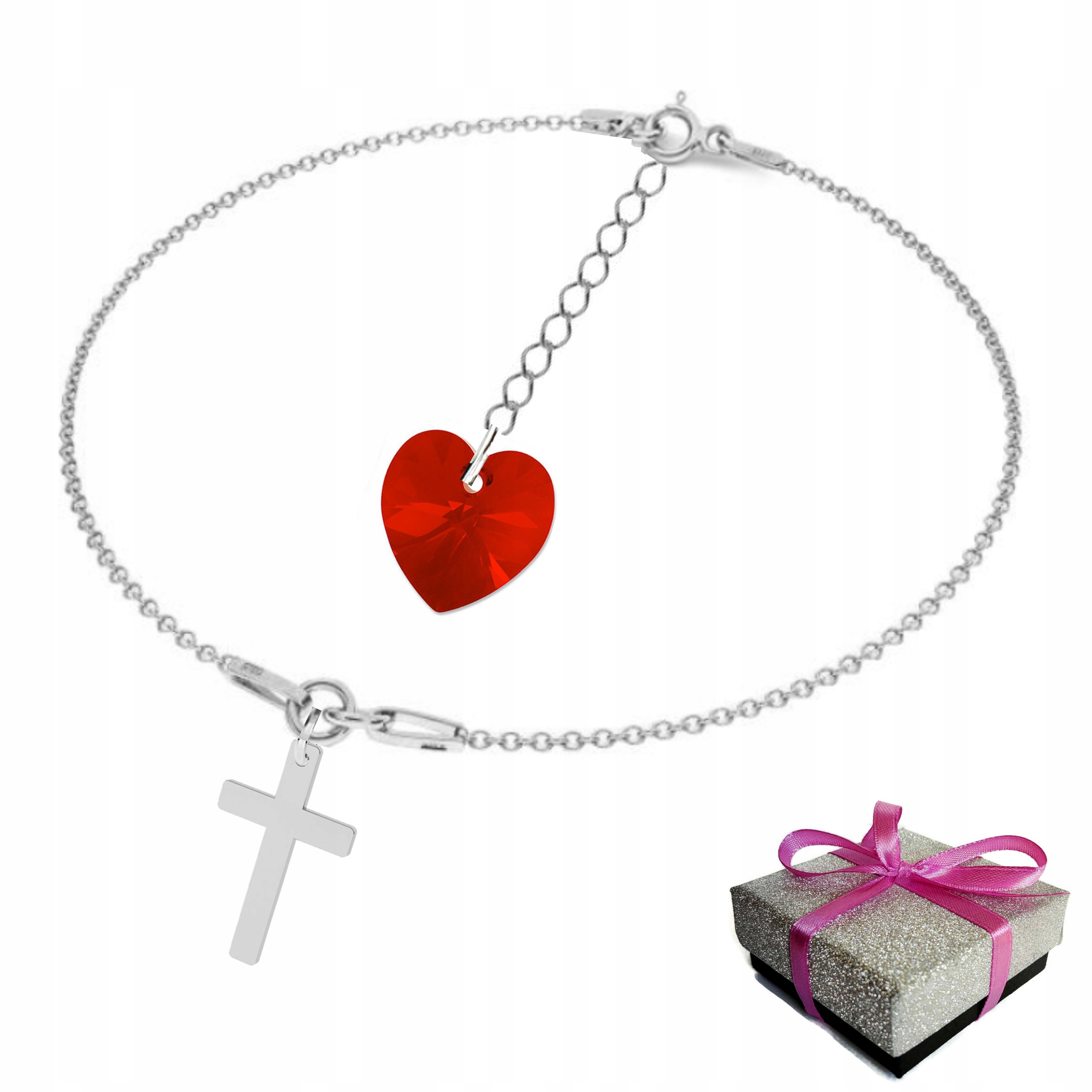 Предметом предложения является браслет для девушки с крестом, украшенный сердечком SWAROVSKI ELEMENTS.