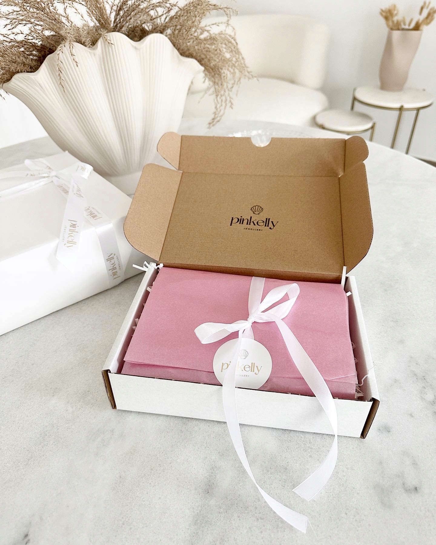 Ювелирные изделия упакованы в роскошную коробку для ювелирных изделий с золотым логотипом. Целое отправляется в экологическую коробку с розовой бумагой и элегантным конвертом, закрытым с жемчужным лаком ручной работы. Кроме того, можно выбрать вариант подарочной упаковки (подарочный пакет)