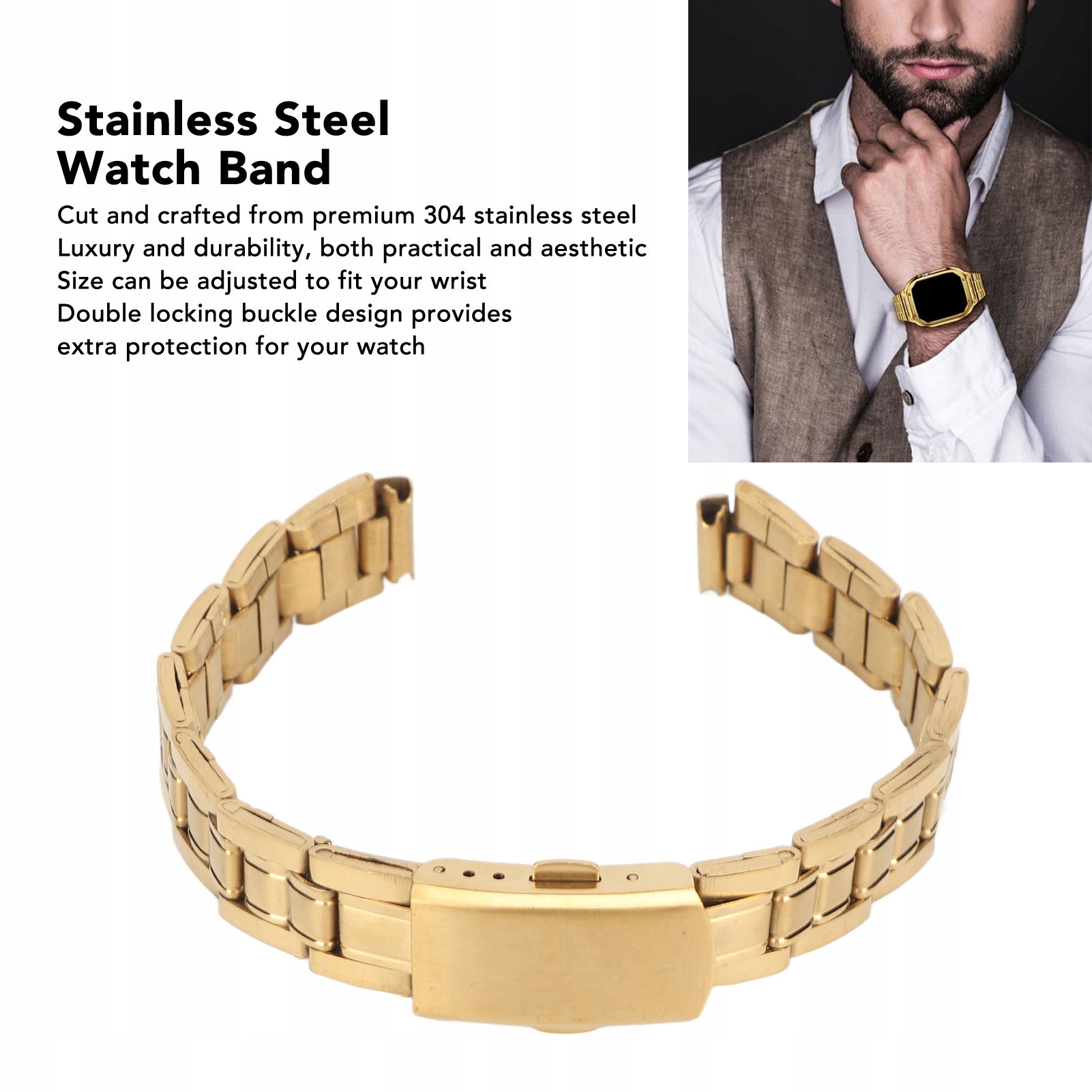3. ДВОЙНАЯ ПРЯЖКА: Ремешок для часов из нержавеющей стали оснащен двойной застежкой, которая обеспечивает дополнительную защиту ваших часов.