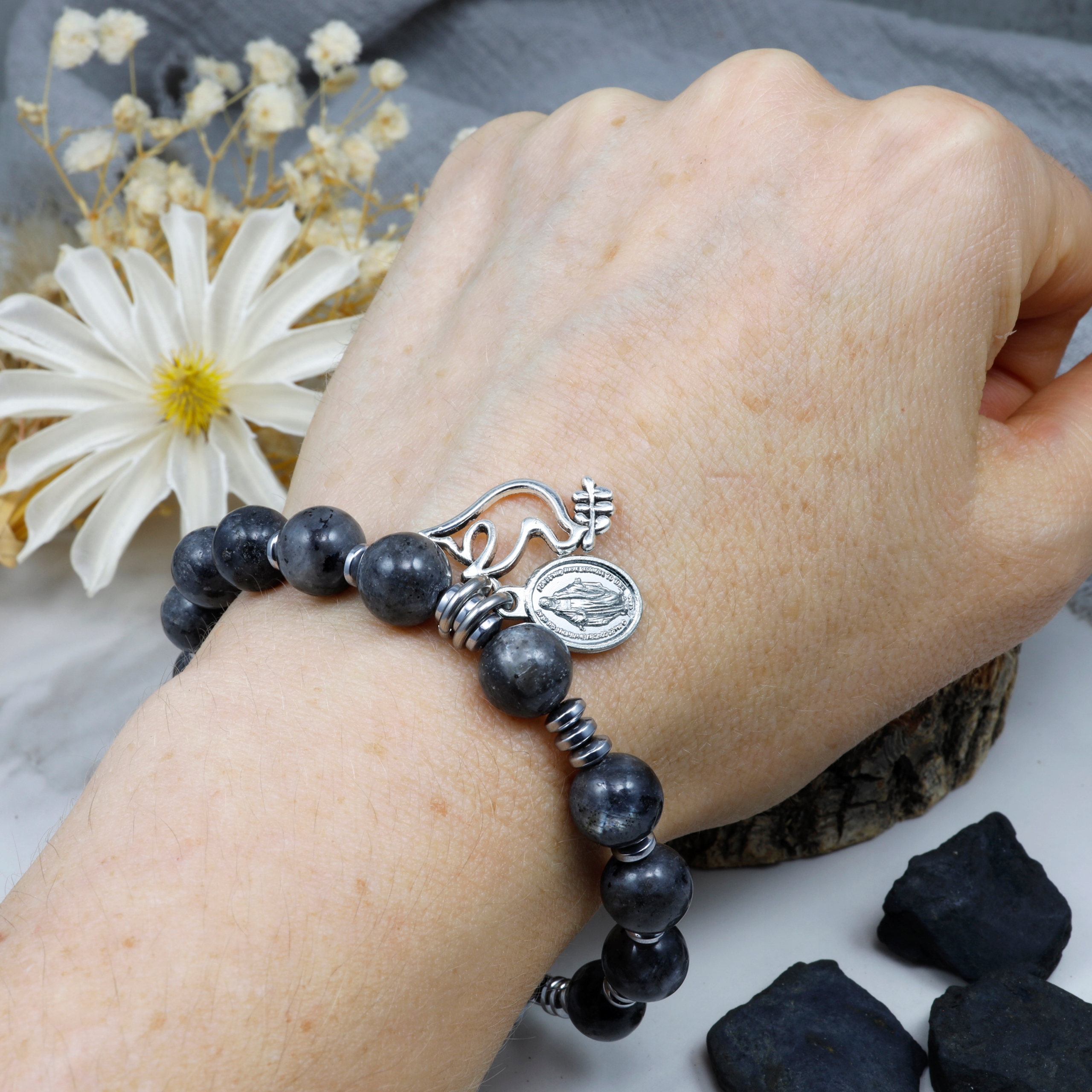 Браслет на руку ЖЕНСКИЙ РОЗАРИЙ из камней LARVIKIT Miraculous Medal