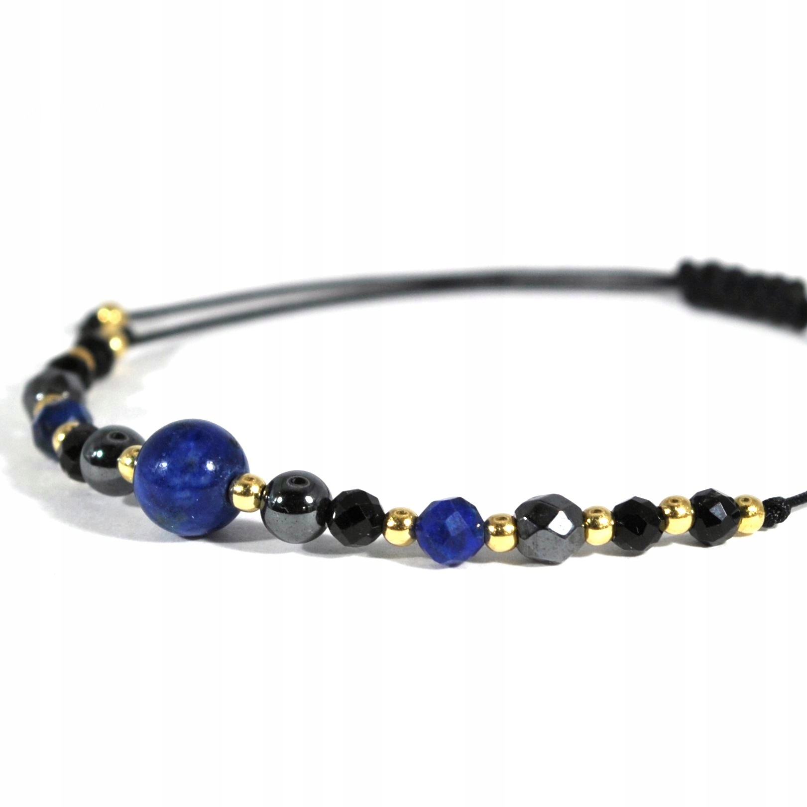 браслет на струне для стрелка, изготовленного из натуральных камней лазулы, турмалинового и гематита h1> ❤ натуральные лазули, черный турмалин и гематит h2> ❤ Рубашка Полосы доступа Gold h2> ❤ Вселенное размер H2>>