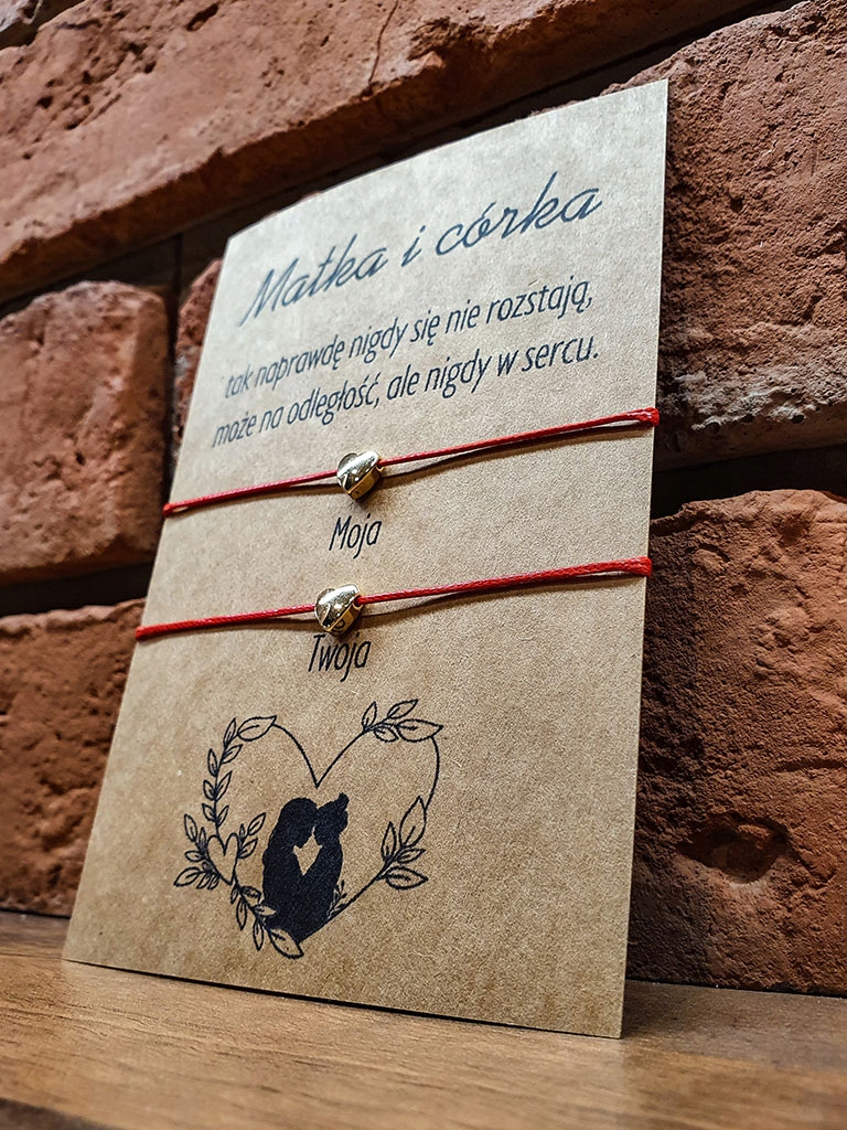 Браслет-открытка для мамы и дочки в подарок Сердце Сердце с пожеланиями