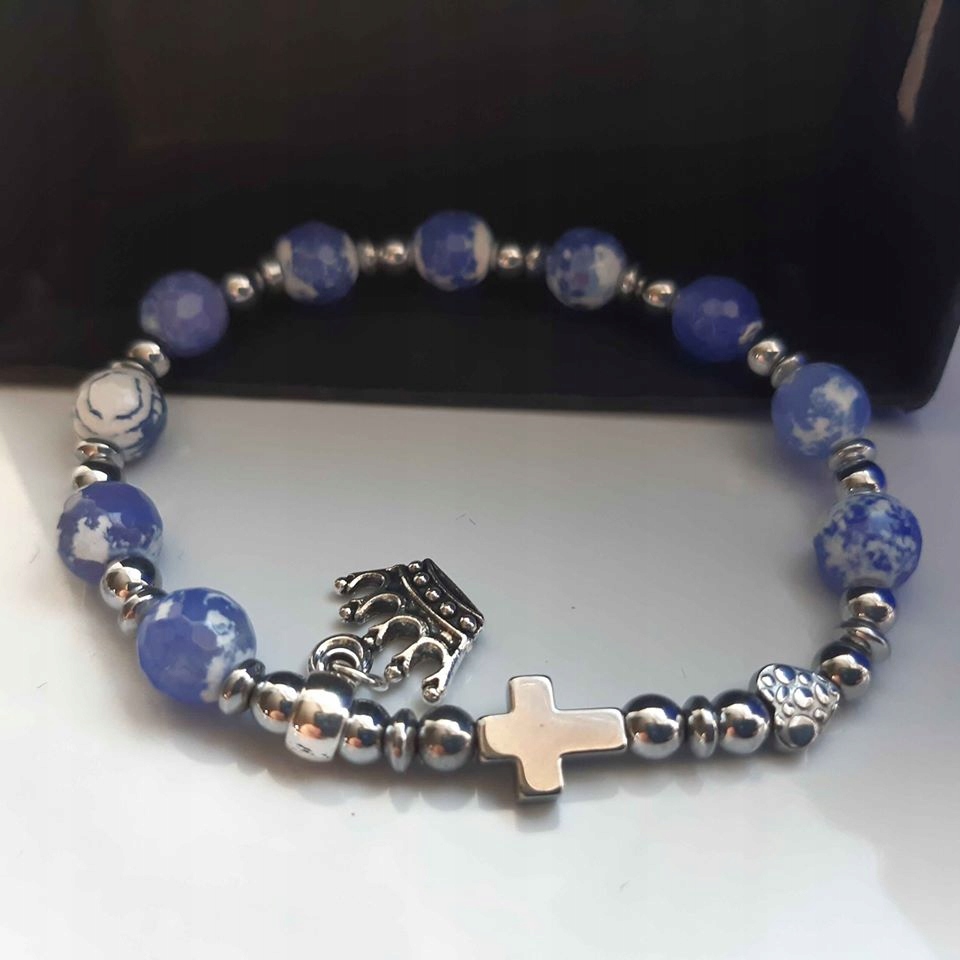 Браслет на чотки Мінеральний агат + Чудотворний медаль / Освячений /