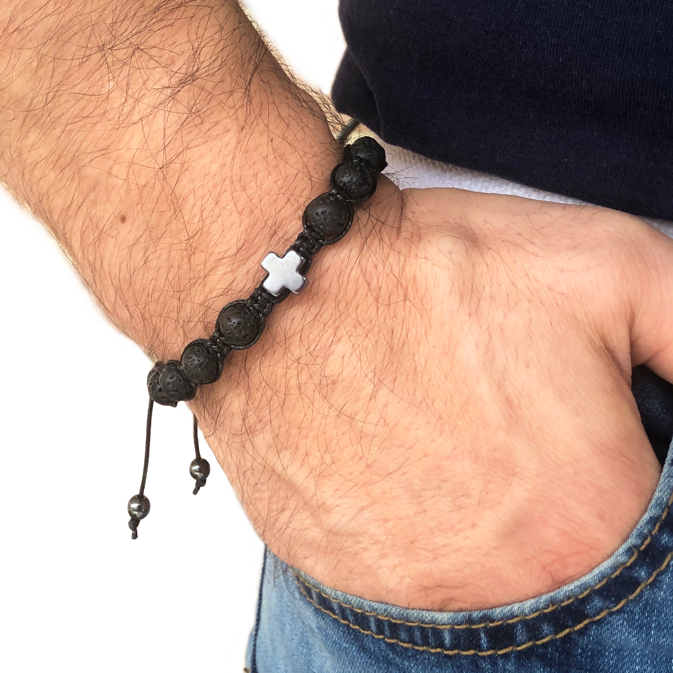 Браслет РОЗАРІЙ на чоловічу руку ЛАВА і ГЕМАТИТ