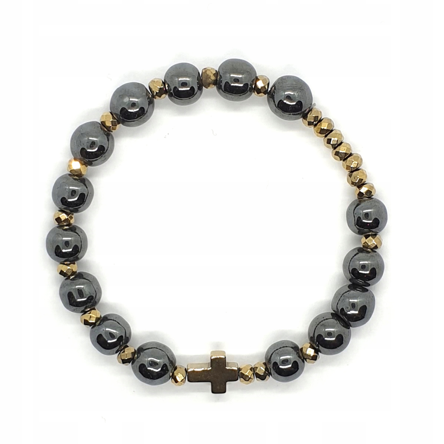 Золотой гематит:крест 10х8 мм и граненые проставки 4 мм