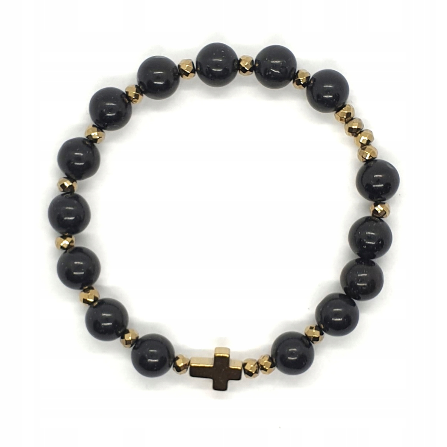 Золотой гематит:крестик 10х8 мм и граненые кольца 3/4 мм.