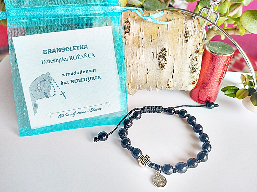 Браслет РОЗАРІЙ на руку з чорними намистинами Св. Бенедикта Регульована окружність
