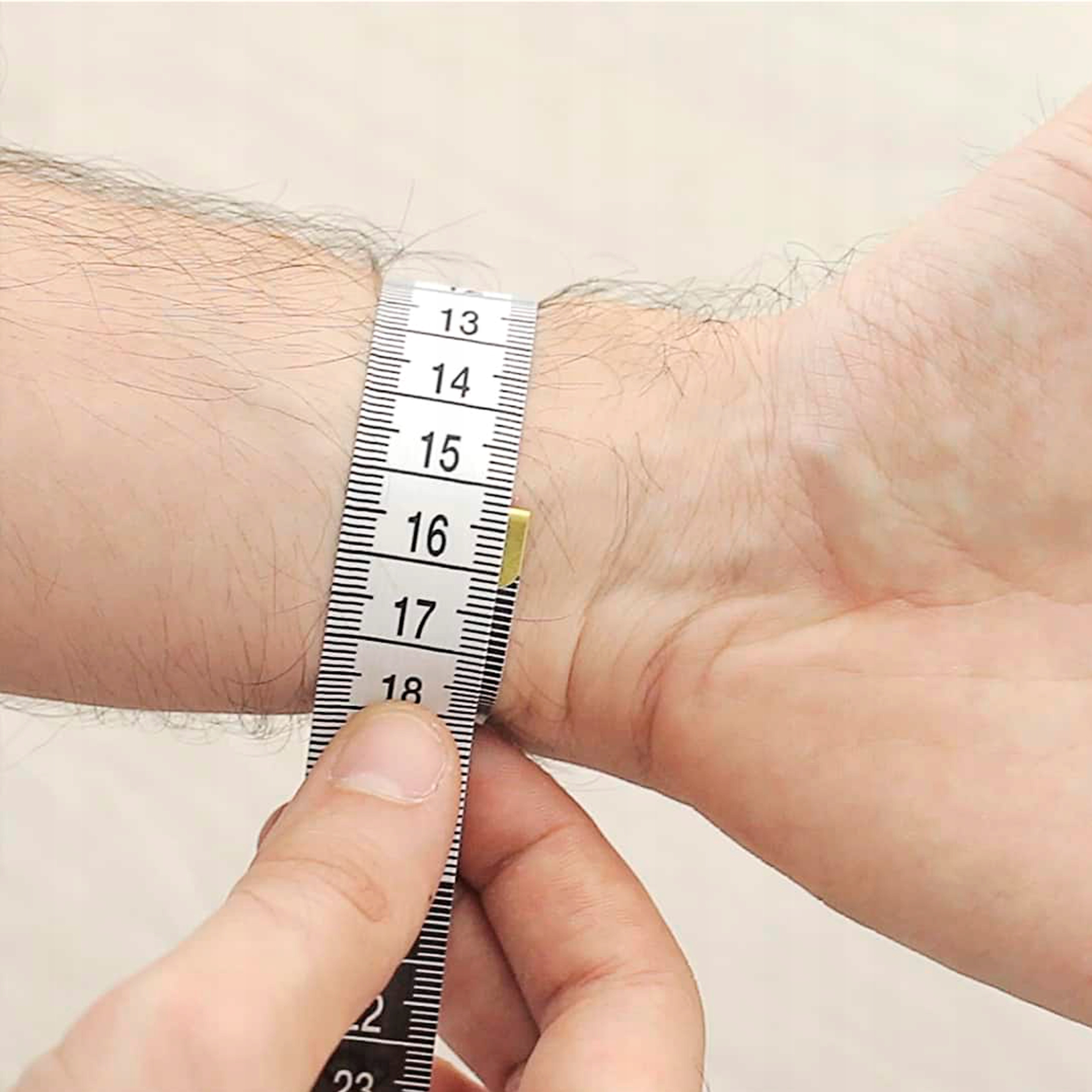 Измеряем запястье плотно, без каких-либо провисаний, с помощью рулетки или тонкой веревки или полоски бумаги, которую затем измеряем линейкой.
