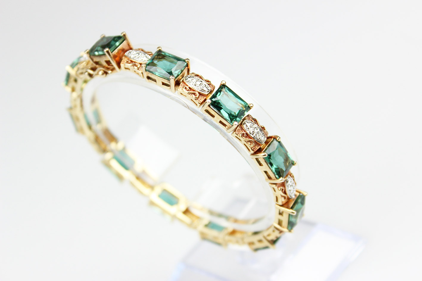 БРАСЛЕТ С ЭЛЬБАИТАМИ, СЕРЕБРО, ПОЗОЛОЧЕННЫЕ БРИЛЛИАНТЫ