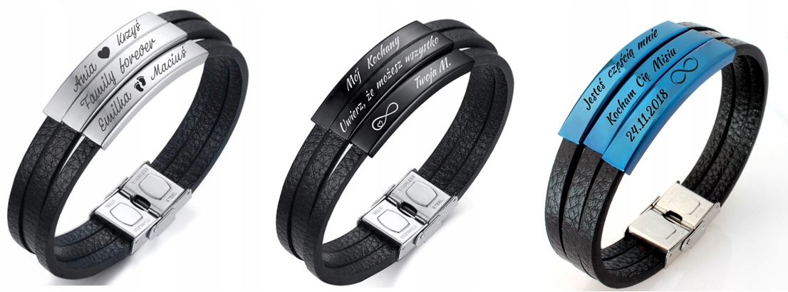 3 таблички для ваших имен, дат или другую важную для вас информацию, например: «Я люблю тебя, я скучаю по тебе, я думаю, что ты» и т. д. Вы можете создать браслет, который действительно сохранит ваши воспоминания. Высочайшее качество изготовления, кожаные ремешки, сталь 316L и эти имена! даты!