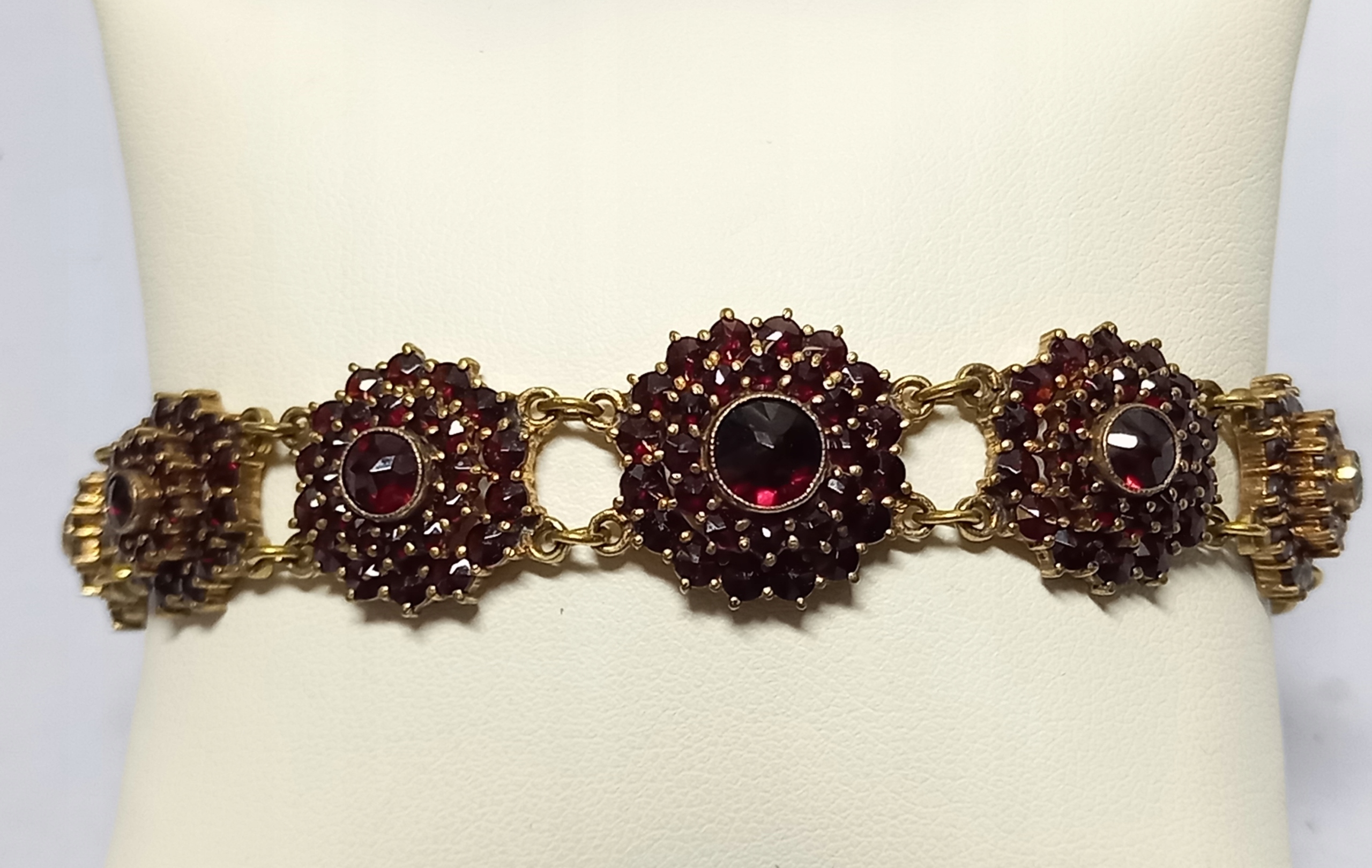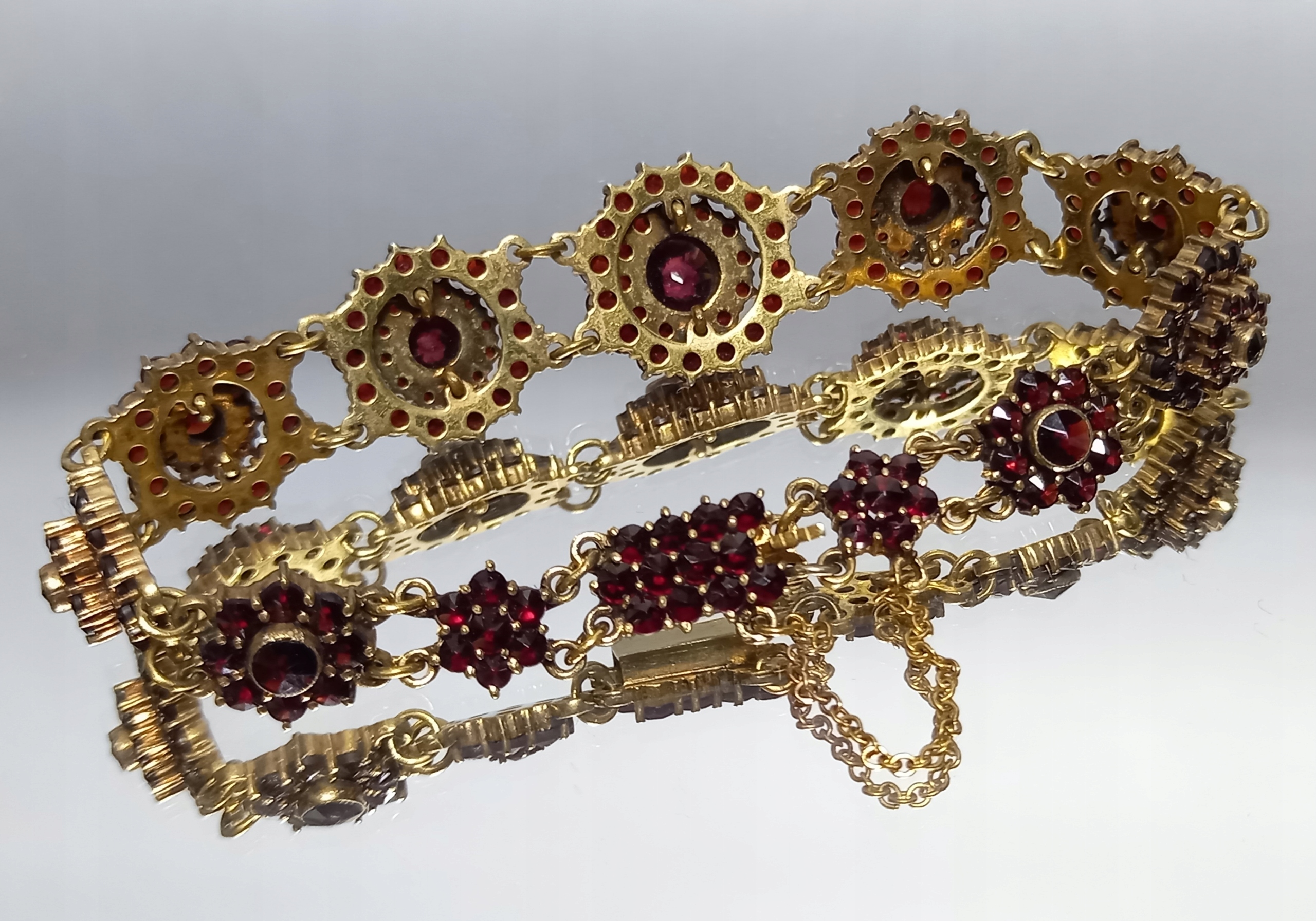 Браслет с гранатами, позолоченная латунь, ранняя 20 -й век