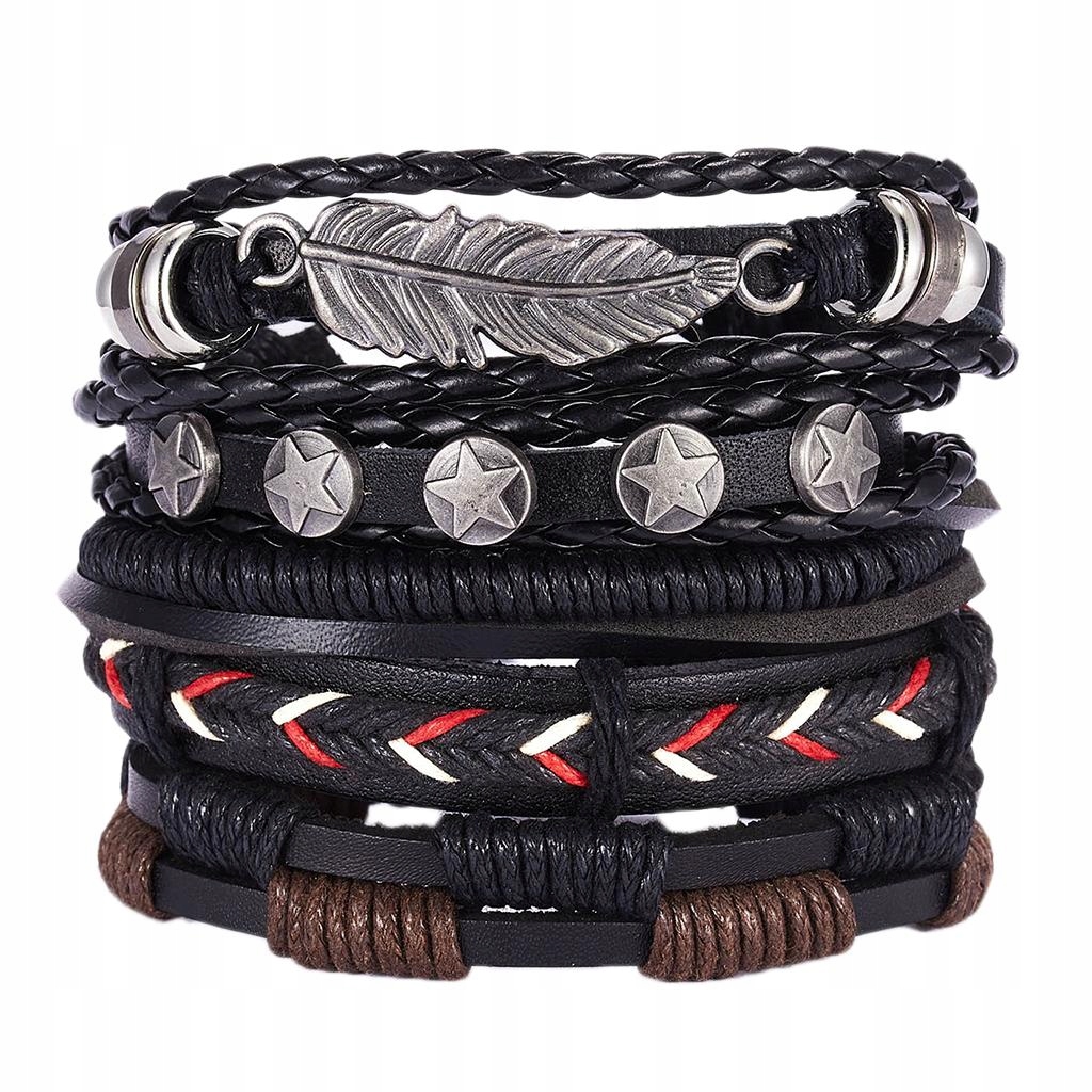 5 или 6 смешанных плетеных браслетов, в разных стилях, показывают мужской вкус