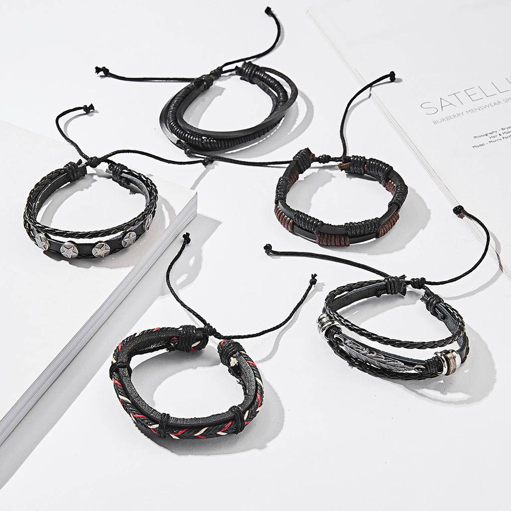 Браслет кожаной ткани в ретро -стиле 5 листьев