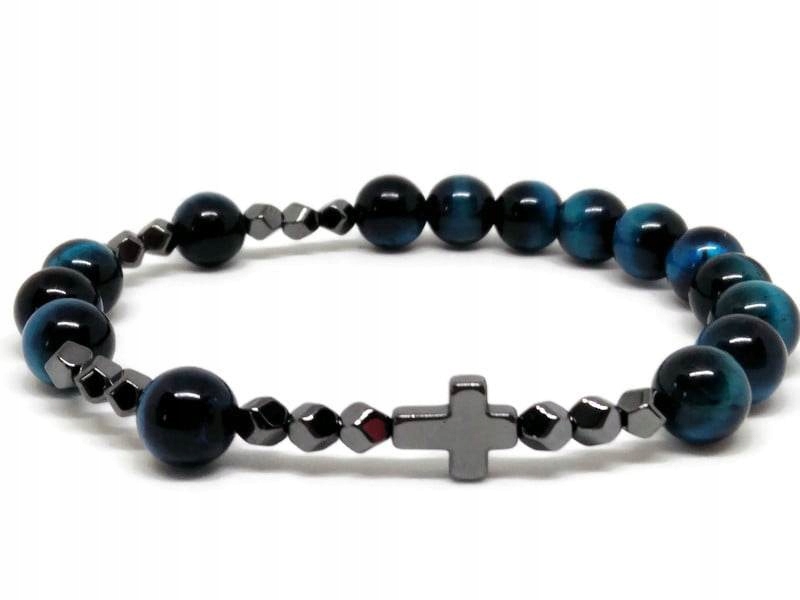 Браслет ЧЕТКИ из натуральных камней ГОЛУБОЙ ТИГРОВЫЙ ГЛАЗ и ГЕМАТИТ.