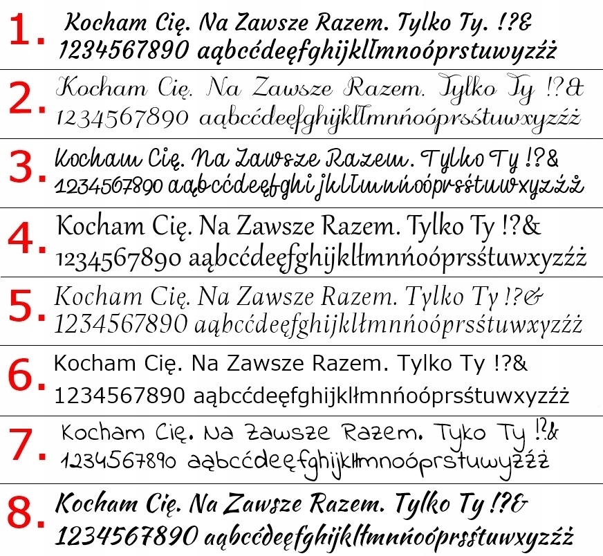 ВНИМАНИЕ! Пожалуйста, четко предоставьте данные для гравировки, т. е. номер шрифта, номер изображения и текст.
