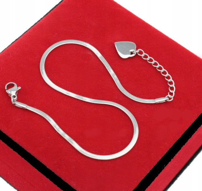 Серебряный браслет на щиколотку в виде змеи, изготовленный из хирургической стали высочайшего качества 316 L, с сердечком.