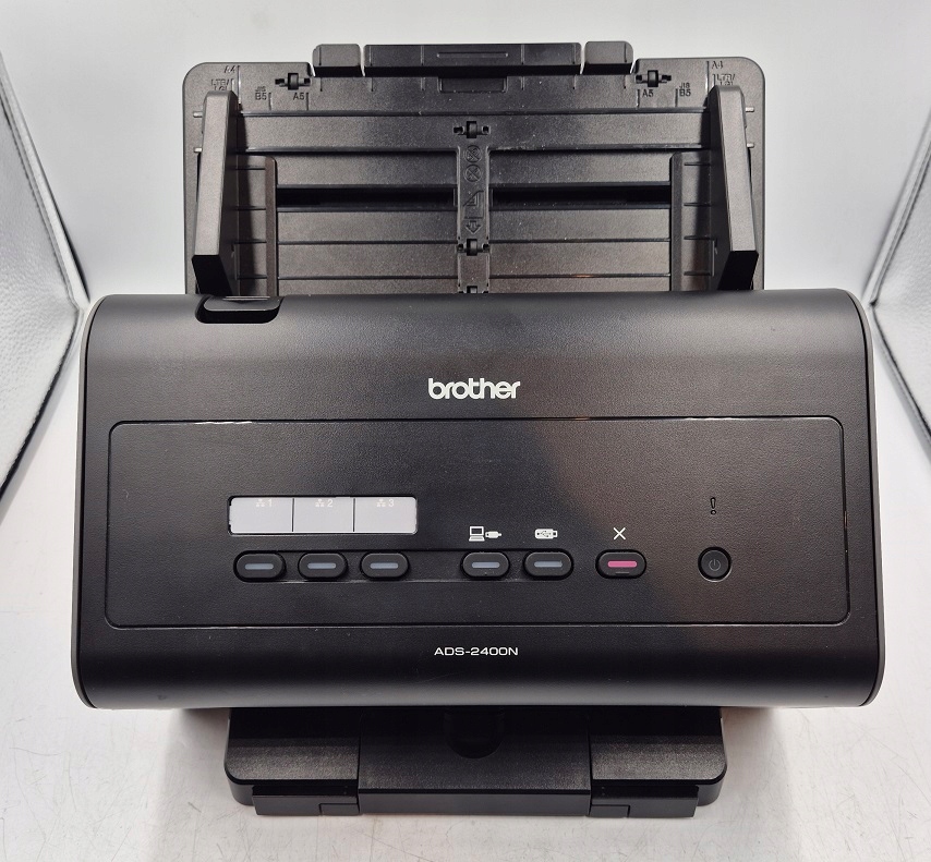 ADS-2400N-это профессиональный сканер, адресованный предприятиям и учреждениям, которые архивируют большие объемы данных. Модель поддерживает множество типов и размеров носителя и характеризуется высокой скоростью работы. Он также предлагает двойную функцию сканирования. Сканер предлагает ультразвуковое обнаружение двух или более страниц одновременно, а усовершенствованная система ролика для точной обработки листа предотвращает обезбоченную бумагу. Устройство было оснащено автоматическим бумажным фидером на 50 страниц и предлагает интерфейс USB 2.0. Сканер может обрабатывать широкий спектр материалов из различных толщин, включая пластиковые карты