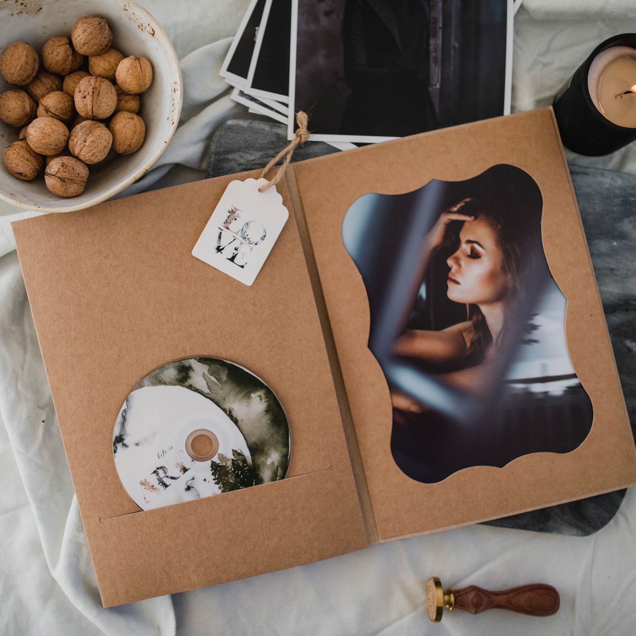 2. Первая страница после разворачивания: разрез для дополнительных отпечатков или компакт -диска (он введет 10 дополнительных отпечатков). Вы также можете поместить визитную карточку, листовку и т. Д.