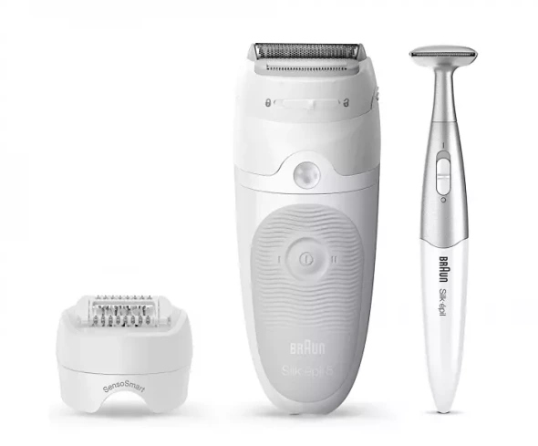 Серебряный эпилятор Braun Silk-épil 5 оснащен инновационной технологией SensoSmart с использованием датчика давления, обеспечивая превосходное удаление волос. Технология Micro-Grip использует 28 пинцета, чтобы идеально удалить даже самые короткие волосы с длиной всего 0,5 мм. Благодаря этой технологии ваша кожа будет гладкой в течение нескольких недель. Прикрепленная бритья головка с привязанностью к обрезке предоставляет дополнительные возможности ухода для чувствительных мест. Эпилятор на 100% водонепроницаемый, поэтому вы также можете дефилировать в ванне или в душе. Набор также включает в себя триммер паха, что позволяет точно разрезать линии, например, вокруг бикини