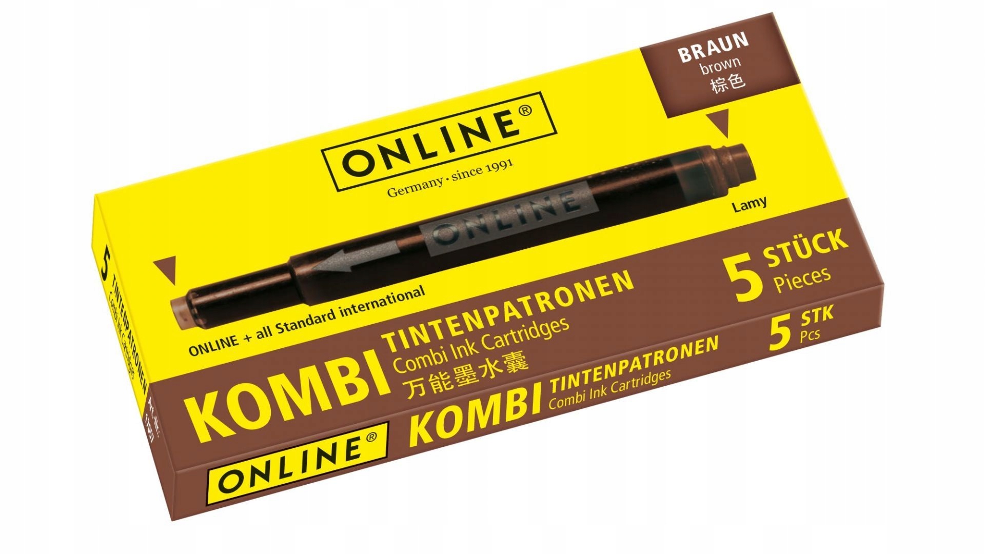 Другая сторона онлайн -картриджа (более толстый наконечник) идеально подходит для перьев lums или parker . Carei может использоваться в качестве замены для картриджей этих компаний.