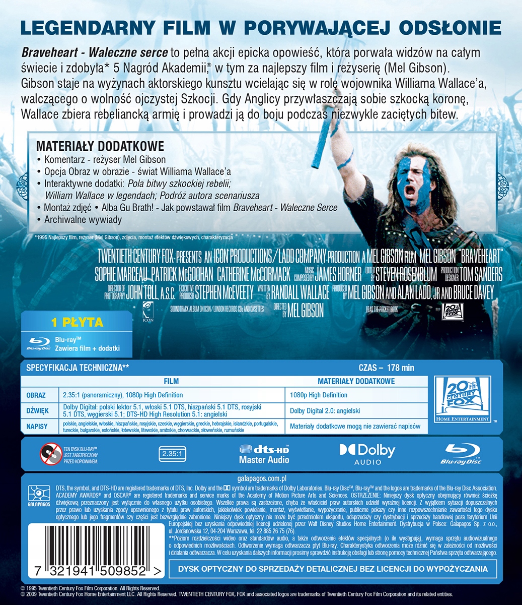 Дополнительно: Комментарий – режиссёр Мел Гибсон; Вариант «Картинка в картинке» — мир Уильяма Уоллеса;