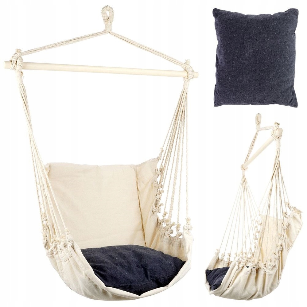 ✅ Прочный материал - изготовлен из прочной и прочной ткани. Комбинация 60% хлопка и 40% полиэстера сделает материал комфортным и устойчивым к повреждениям. Бежевый гамак и графитовая подушка. Максимальная нагрузка 120 кг.