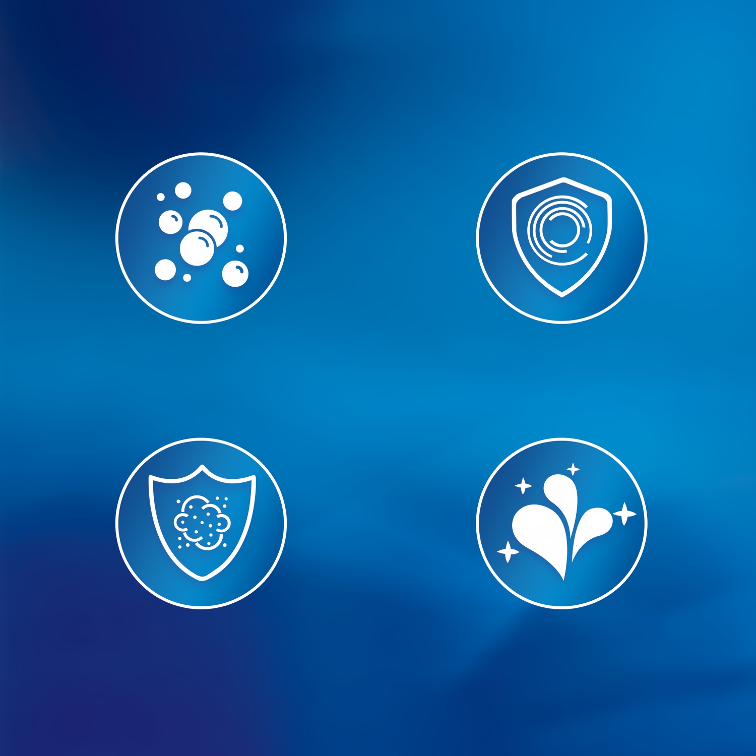 Активная пена, эффект снижения, защита от грязи и дополнительная свежесть-эта 4-функциональная формула обеспечивает максимальный уровень чистоты в вашем туалете и дополнительную свежесть для вашей ванной комнаты.