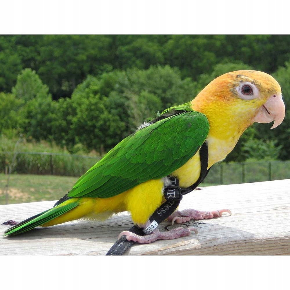 Шлейку легко надеть: просто наденьте ее на голову птицы, поднимите каждое крыло через петлю и затяните ремень.