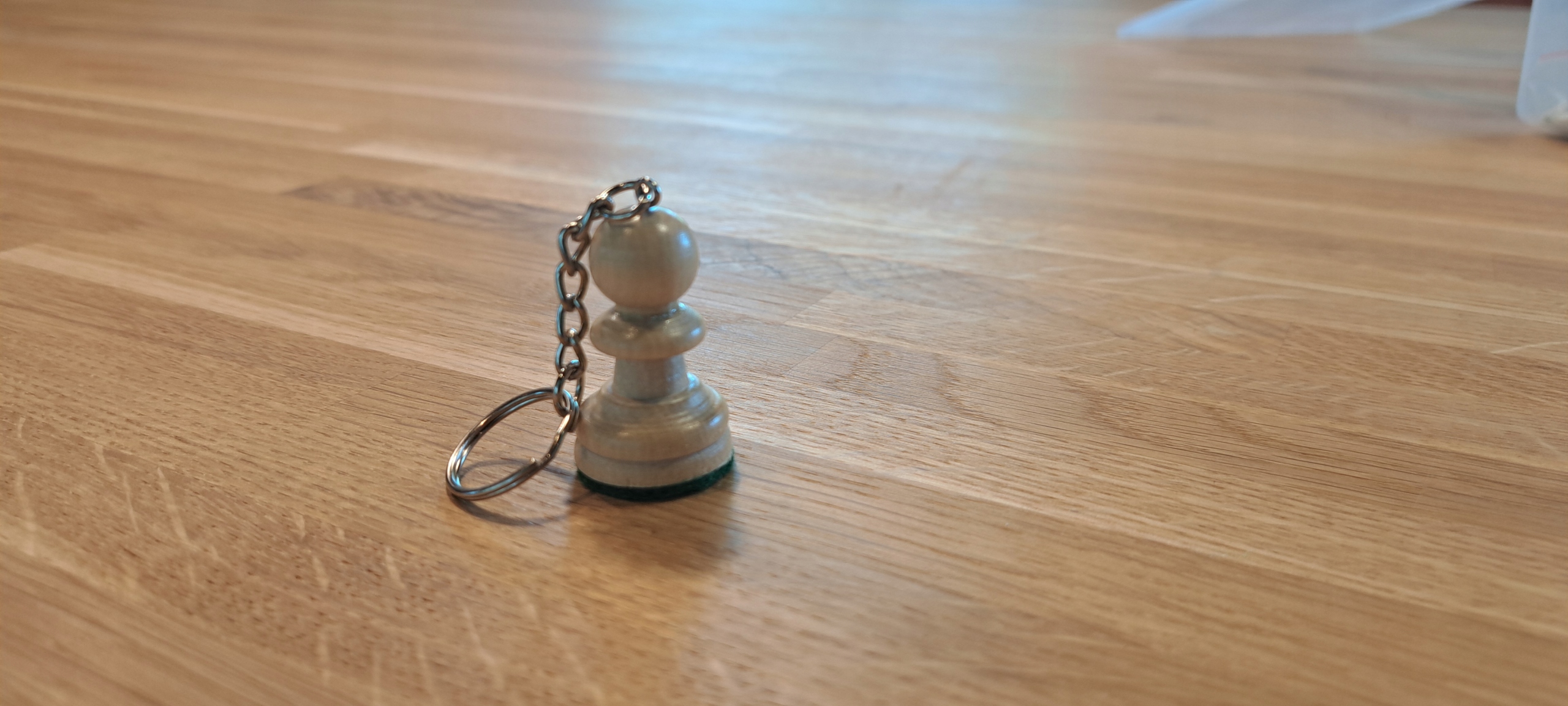 Деревянный брелок-шахматка с металлической застежкой. Шахматный гаджет не только для самых маленьких. Брелок можно использовать как небольшой подарок или брелок для ключей. Предложение распространяется на белую пешку.