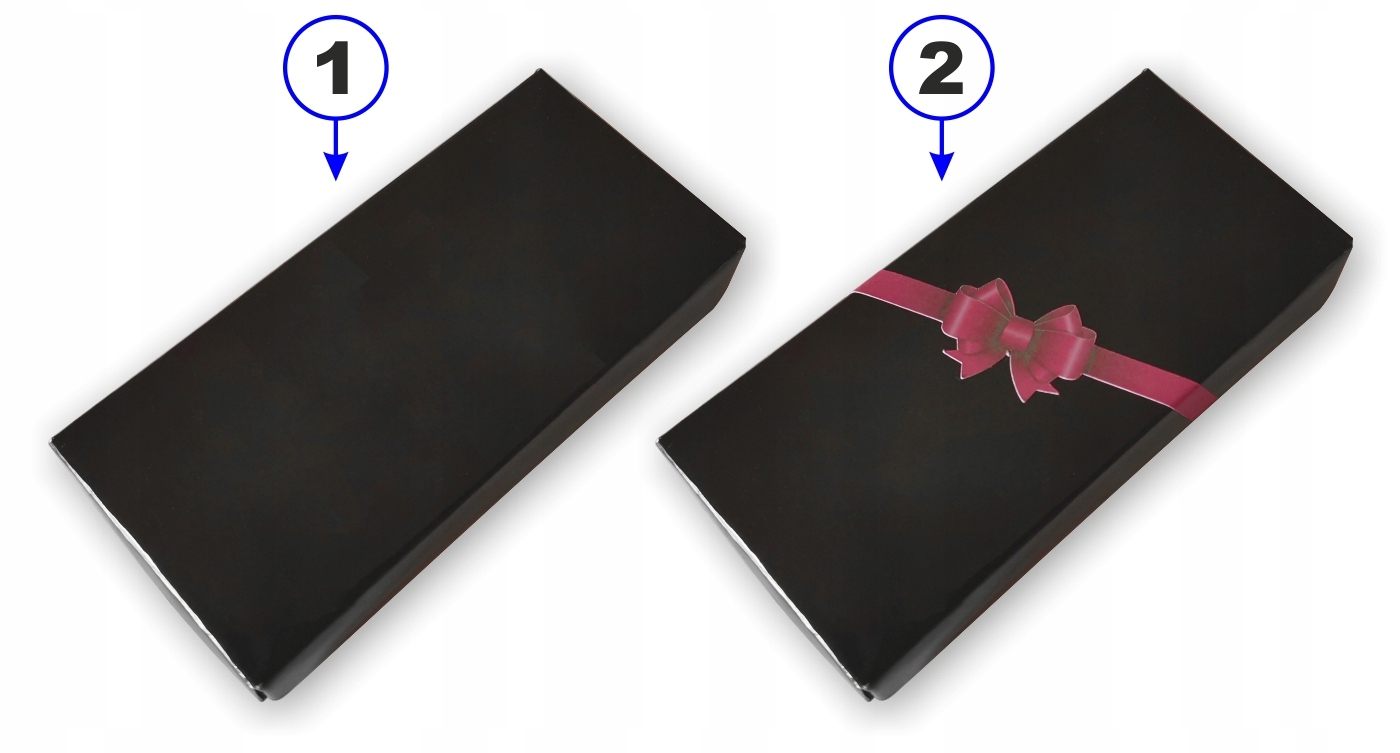 Вы заказываете в подарок? заменить стандартный черный ящик [1] на такой же с дополнительной имитацией ленты с бантом [2]. Обмен совершенно бесплатный, нужно лишь добавить в сообщение «ПОДАРОЧНАЯ УПАКОВКА». Без этой информации брелок будет поставляться в стандартной черной коробке [1].