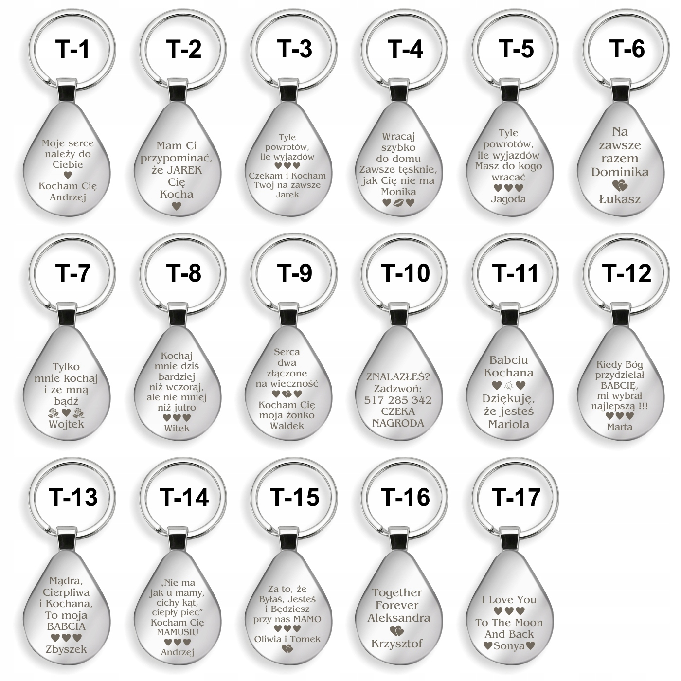 - Содержание гравировки на обратной стороне брелока (информация о варианте гравировки представлена выше)