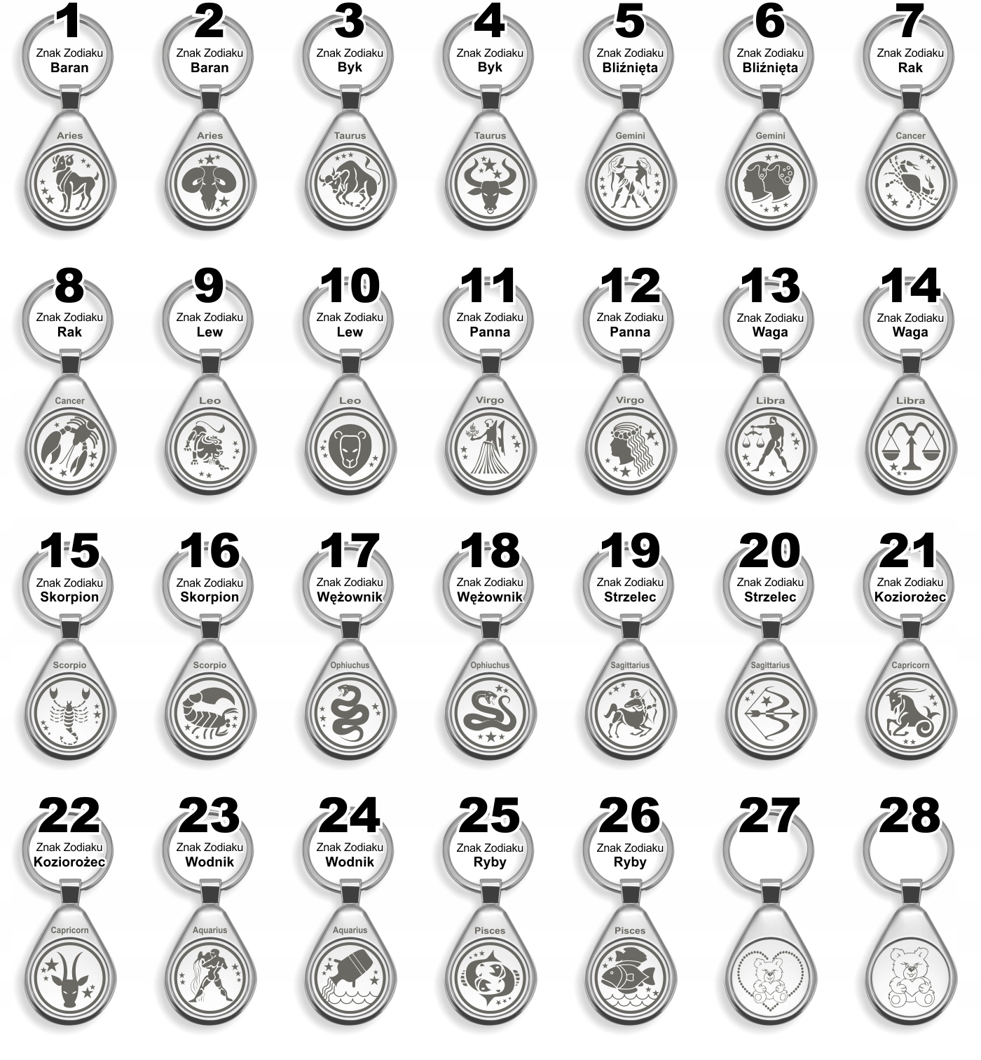 КОЛЬЦО ДЛЯ КЛЮЧЕЙ Знаки зодиака Валентина ВАША ГРАВИРОВКА [GRW]