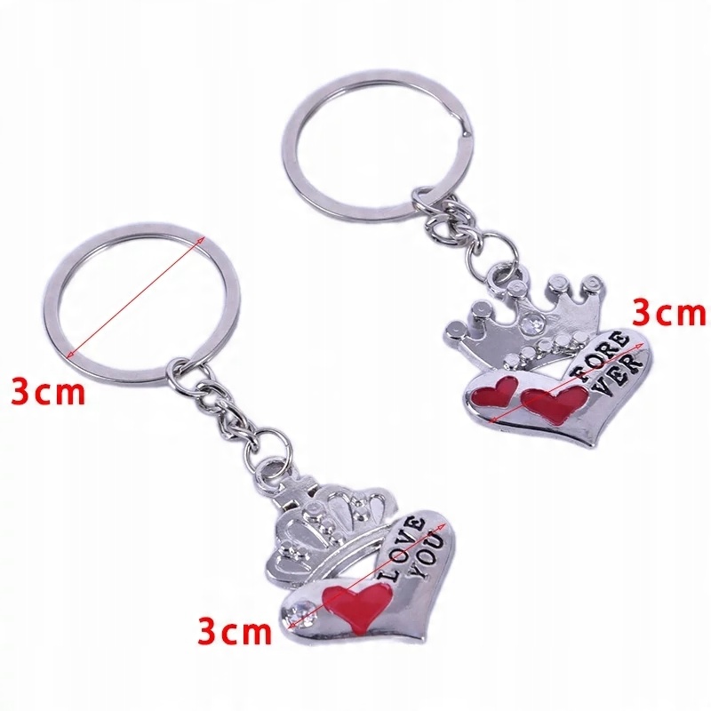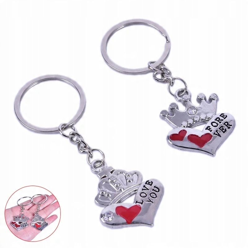 Когда их сложить близко, брелки образуют надпись «I LOVE YOU FOREVER» ". Они украшены кристаллами и красными сердечками. Они красиво смотрятся рядом с вашими ключами.