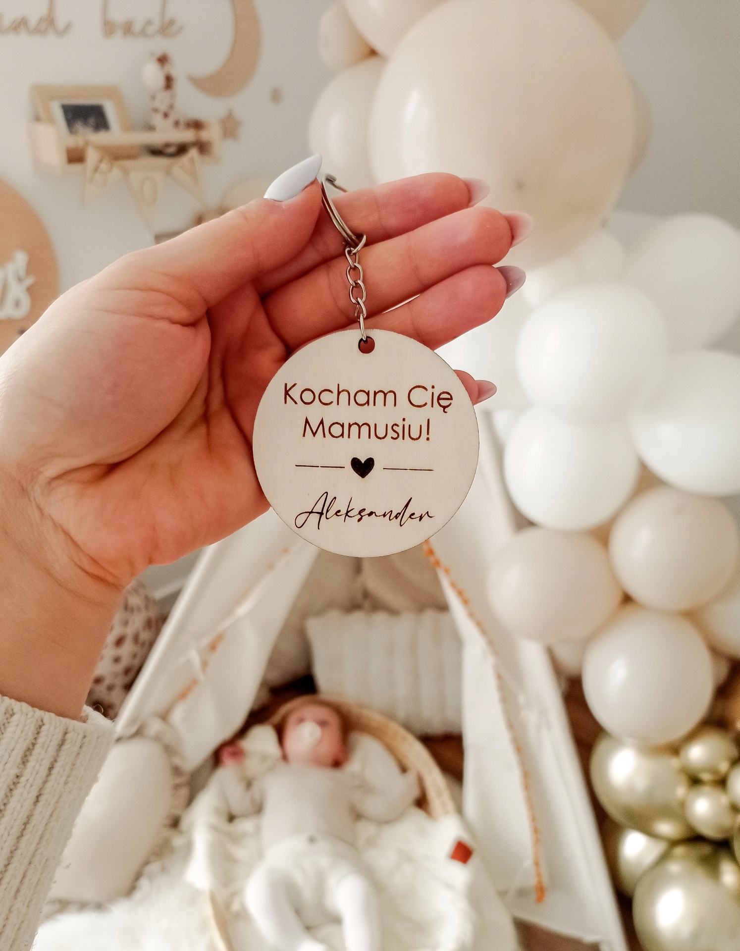 В качестве украшения ключа прекрасно подойдет деревянный брелок для мамы с гравировкой. Брелок для ключей изготовлен из березовой фанеры - прекрасная идея подарка на День матери.