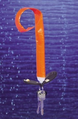 После падения в воду происходит химическая реакция, в результате которой оранжевый буй длиной 47 см, спрятанный в брелке, наполняется газом и приобретает плавучесть, позволяя поднимать на поверхность предметы весом до 80 граммов.