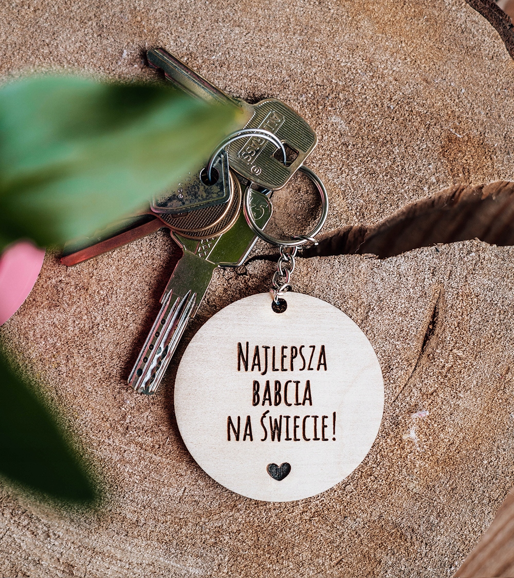 В качестве украшения ключа прекрасно подойдет деревянный брелок для бабушки с гравировкой. Брелок изготовлен из березовой фанеры - прекрасная идея подарка на День бабушки.
