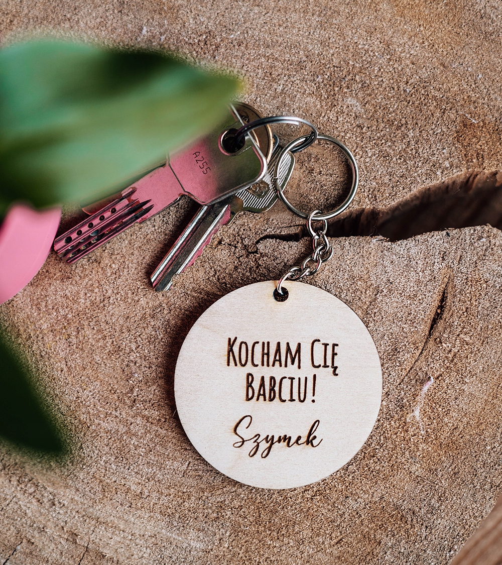В качестве украшения ключа прекрасно подойдет деревянный брелок для бабушки с гравировкой. Брелок для ключей изготовлен из березовой фанеры - отличная идея подарка на День бабушки.