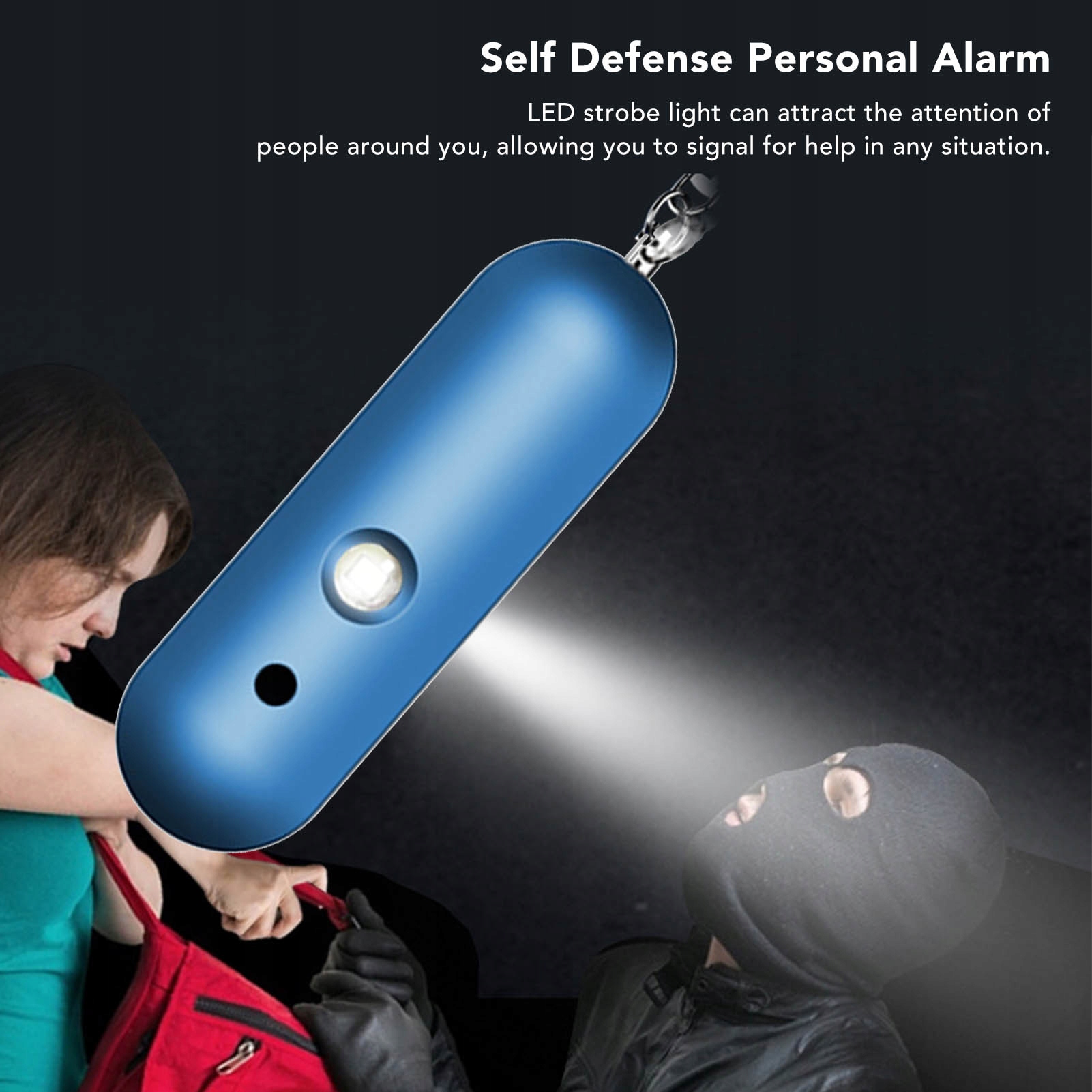 Брелок-сигнализация личной безопасности, высокий децибел, двойной звуковой сигнал, водонепроницаемый портативный светодиодный стробоскоп для женщин и детей, синий