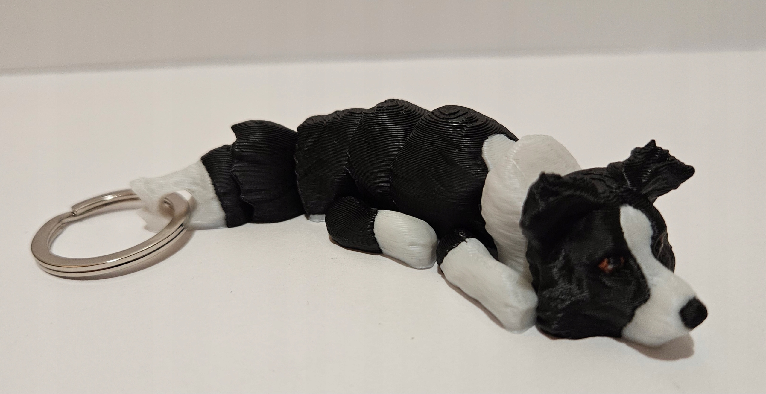 Брелок для собак бордер-колли — стильное и очаровательное дополнение к вашим ключам. Он полностью подвижен и водонепроницаем. Создан на 3D-принтере из биоразлагаемого материала PLA высочайшего качества. Собака может сидеть, стоять и лежать благодаря своим подвижным лапам.