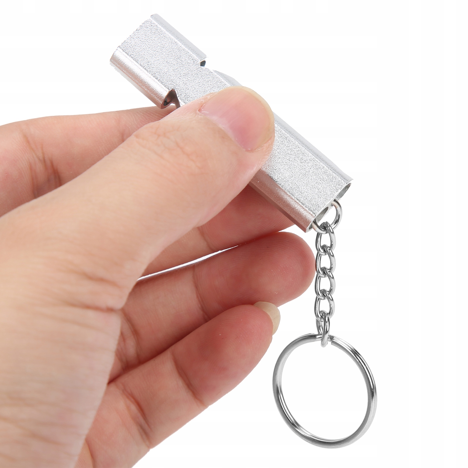 Брелок Свисток Для Выживания Двойные Трубки Алюминиевый Сплав Для Открытого Воздуха Серебристый