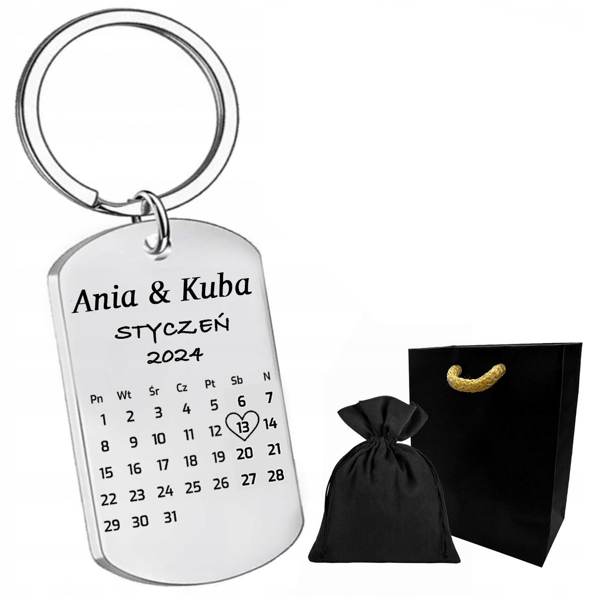 Брелок з ГРАВІЮВАННЯМ, срібло, КАЛЕНДАР, дата, подарунок, СТАЛЬ + БЕЗКОШТОВНО