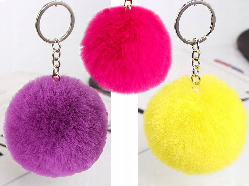 BRELOK ZAWIESZKA DO KLUCZY SZTUCZNE FUTERKO FUTRO DO TORBY PLECAKA POMPON