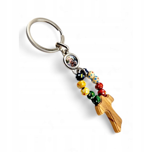Брелок – дерево + металл | Тау + декада четок + Святой Кшиштоф