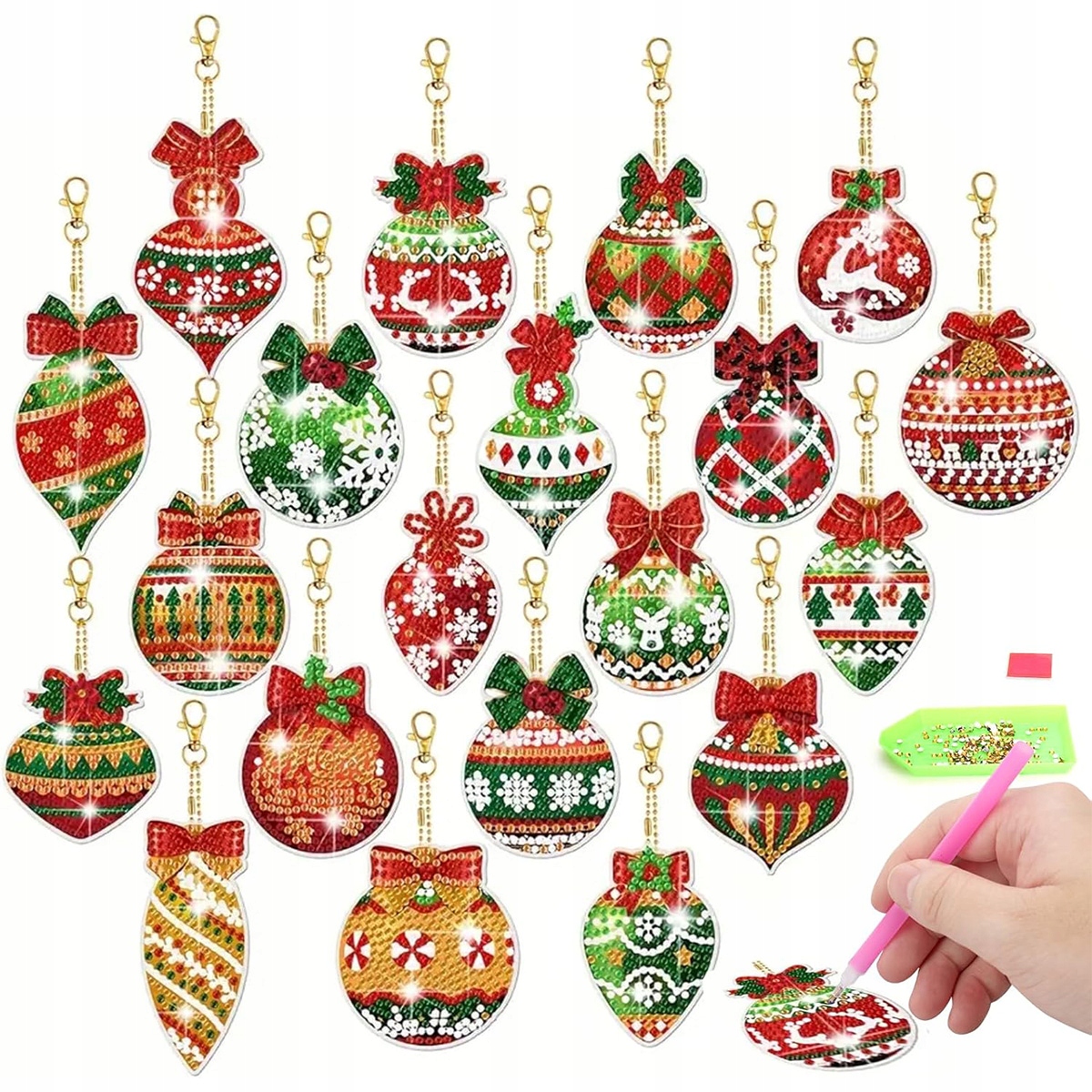 🌟🌟🌟Набор из 20 рождественских подвесок с алмазной росписью, набор для творчества из 5D бриллиантов для детей, брелок для ключей своими руками🌟🌟🌟