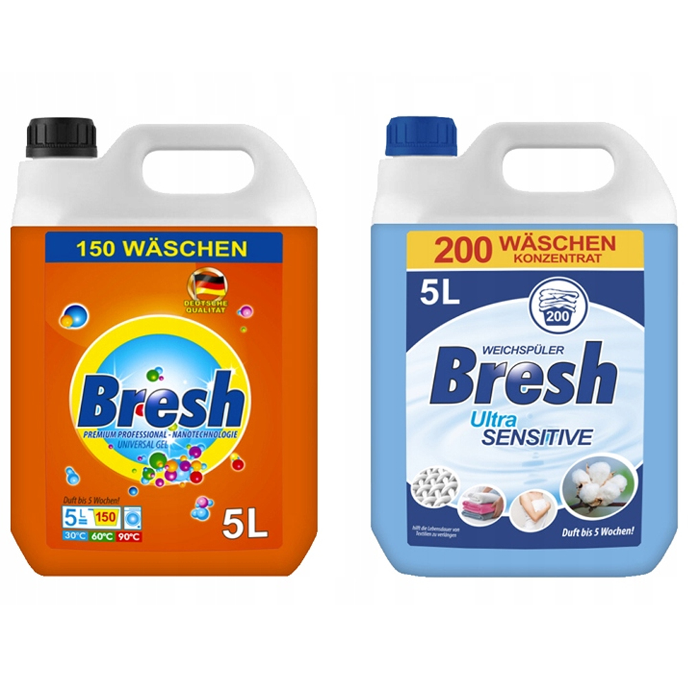 BRESH РІДКИЙ ГЕЛЬ ДЛЯ ПРАННЯ 5Л + ПОМ'ЯКШУВАЧ 5Л